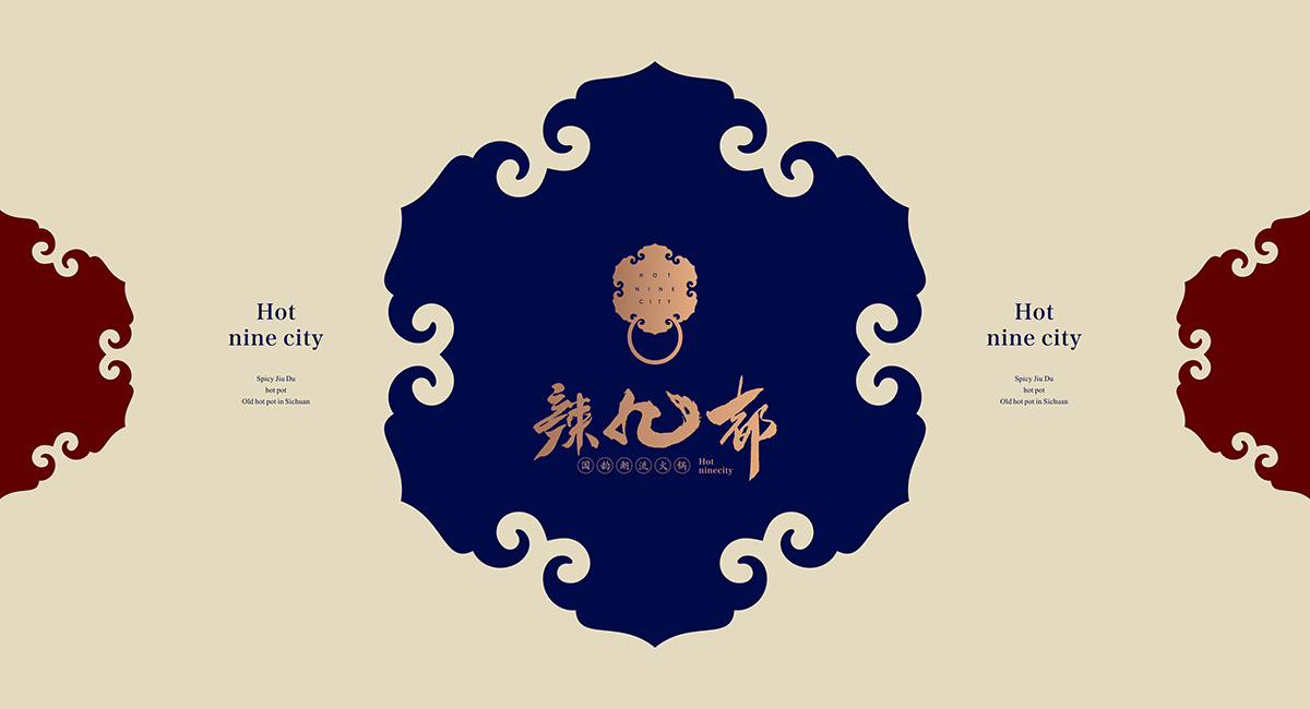 約公元118年,火鍋誕生。公元280年,成都火鍋作為第一個被記載于史的火鍋,收于《蜀都賦》中。在火鍋盛行的今天,以火鍋為原型的火鍋美食已盛行東南亞,南非,成為中國最有影響力和代表性的世界美食之一。越來越多的各國美食愛好者也都愛上了中國火鍋。2018年,辣九都火鍋店正是啟動,融合中國最傳統地道的火鍋精髓與世界美食潮流,獨創出最符合現代人口味的世界美食餐飲品牌。火鍋店VI設計方面,是將中式傳統圖案與中國的書法藝術的一次完美演繹,將中國的古老傳承賦予了新的時尚氣息。把火辣的四川火鍋與皇室都城的高貴緊密相連,傳達出了辣九都火鍋店的熱情和高貴。