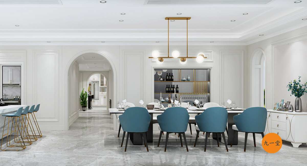 設(shè)計(jì)理念:本案以簡(jiǎn)約的美式風(fēng)格為主,用目前流行的輕奢風(fēng)格混搭家具,體現(xiàn)主人的品味,餐桌以條形桌分餐的就餐習(xí)慣來(lái)滿足客戶長(zhǎng)期生活在國(guó)外的生活習(xí)慣。整個(gè)空間干凈,休閑、雅致,浪漫。